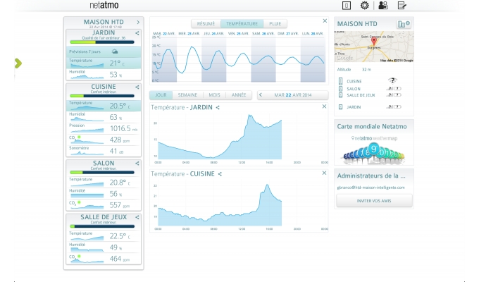 Avec la station netatmo connectée au cerveau intelligent HTD, vous surveillez la Météo et la Qualité de l'Air intérieur.